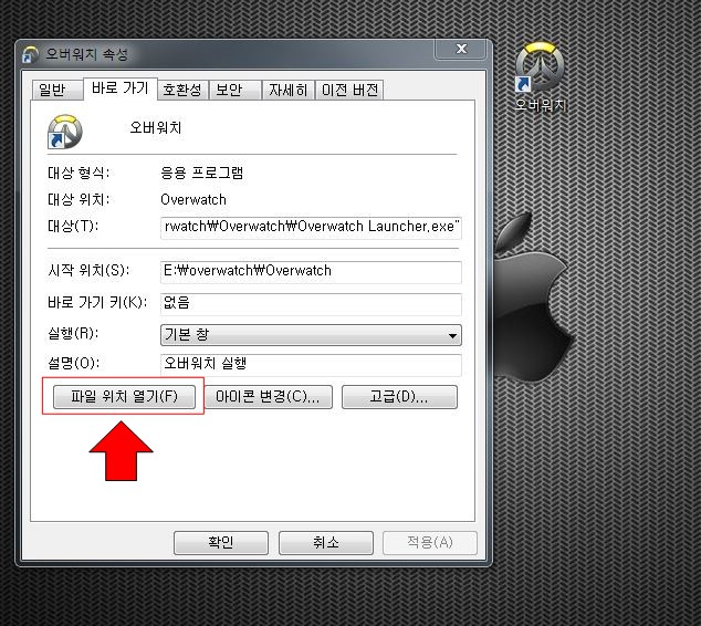 저기 "파일 위치 열기(F)" 버튼을 눌러주시면