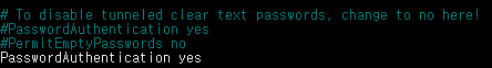 - 비밀번호를 이용한 접속을 위한 Config 수정 및 sshd 재시작