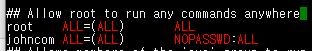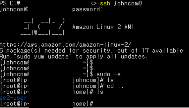 - 위 사진의 명령어를 입력하여 root 권한을 받을 수 있게 만들어 줍시다.