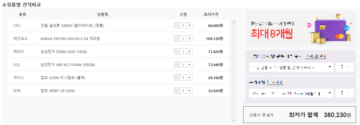 50만원 이하로 컴퓨터를 맞출 예정이라면 아래는 건드리지 않고