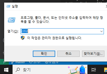 그리고 윈도우 키 + R -> CMD 열어주세요.