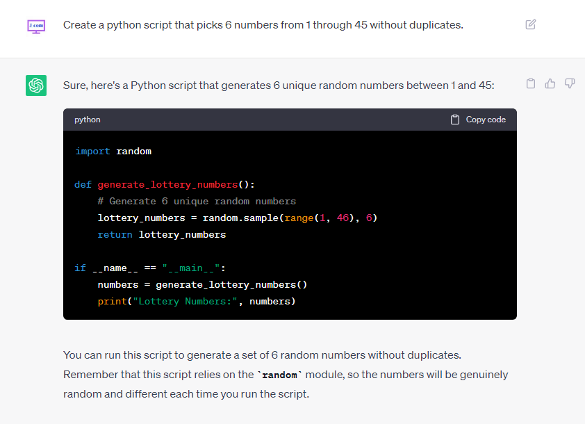 GPT에게 로또번호 만들어 달라고 하면 안줍니다.