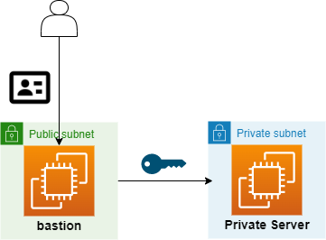 Bastion 사용자가 PrivateKey를 가지고 Privater Server에 PublicKey를 두어 키가 있는 사용자만
