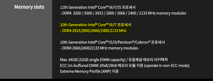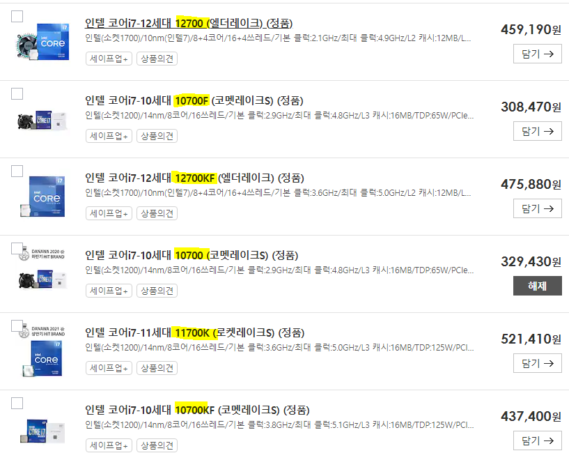 일반사용자가 구매하지 않는 Xeon 시리즈와 기타 시리즈들은 제외하였습니다.